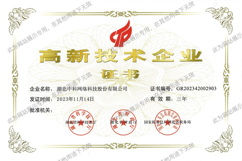 湖北中科網(wǎng)絡科技股份有限公司成立于1998年5月,注冊地為武漢市武昌區(qū),總部位于中國光谷。是智能化、信息化行業(yè)的領軍企業(yè),國家認定的高新技術企業(yè)、湖北省專精特新企業(yè)。